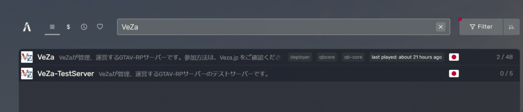 VeZa VeZaが管理、運営するGTAV-RPサーバーです。と記載されている方をクリックして下さい。