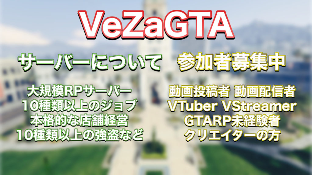 VeZaGTAサーバーはGTAVの公式オンラインサーバーとは違い、公認クライアントを使用したオンラインMODサーバーになります。